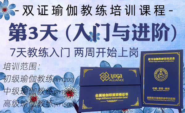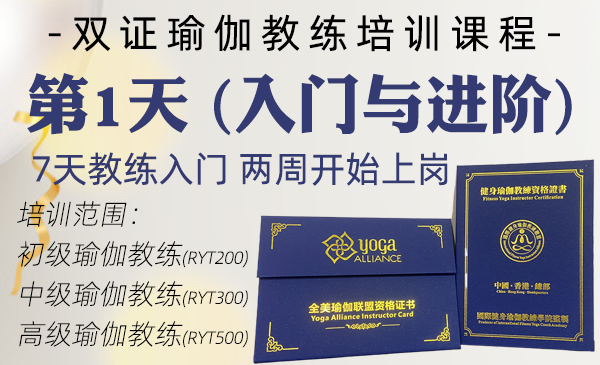 双认证瑜伽教练课程包括:RYT200/初级瑜伽教练、RYT300/中级瑜伽教练和RYT500/高级瑜伽教练。